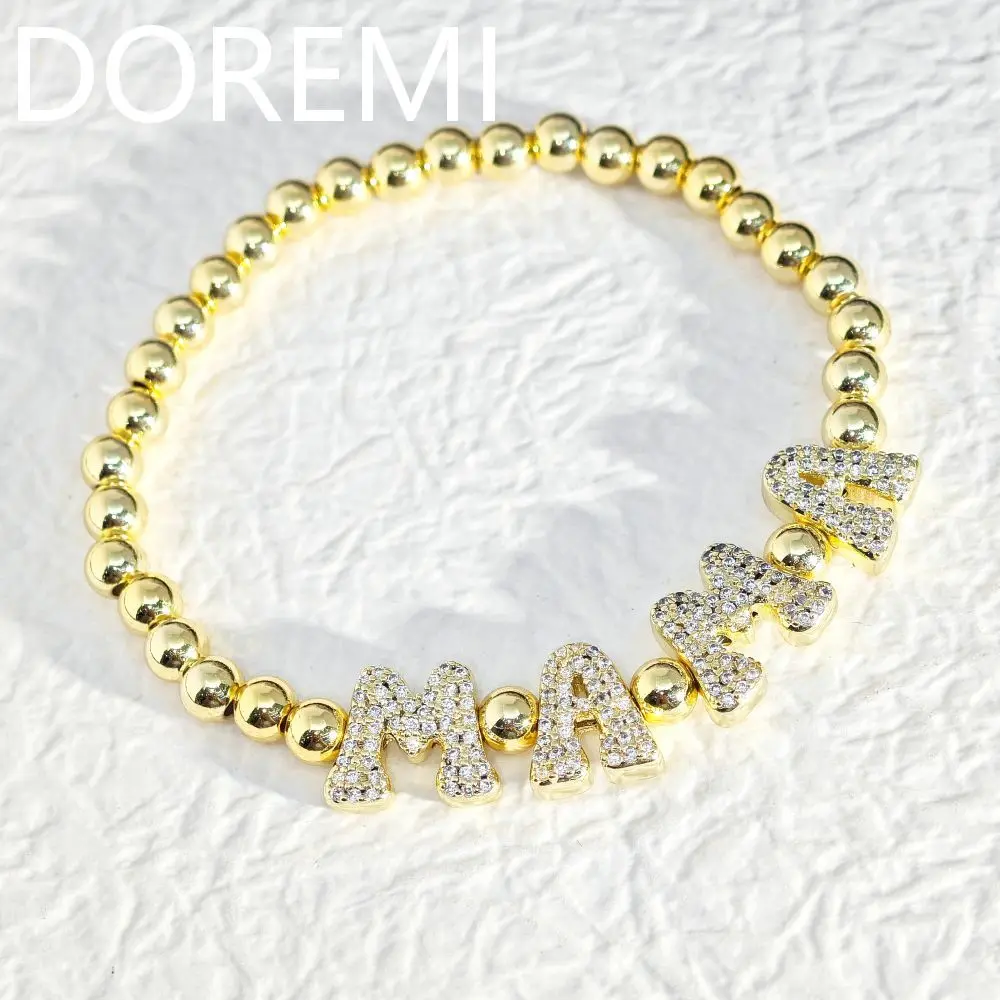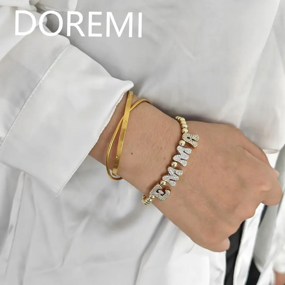 DOREMI Brass Letters Beads Bracelet Custom Jewelry Gift Friendship Bracelets Beads Personalized Initial Bubble Letter Bracelet