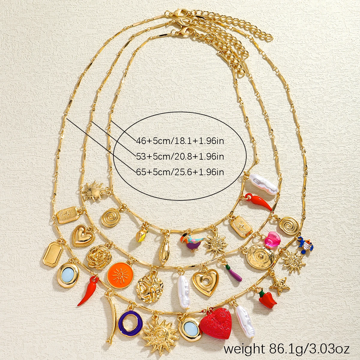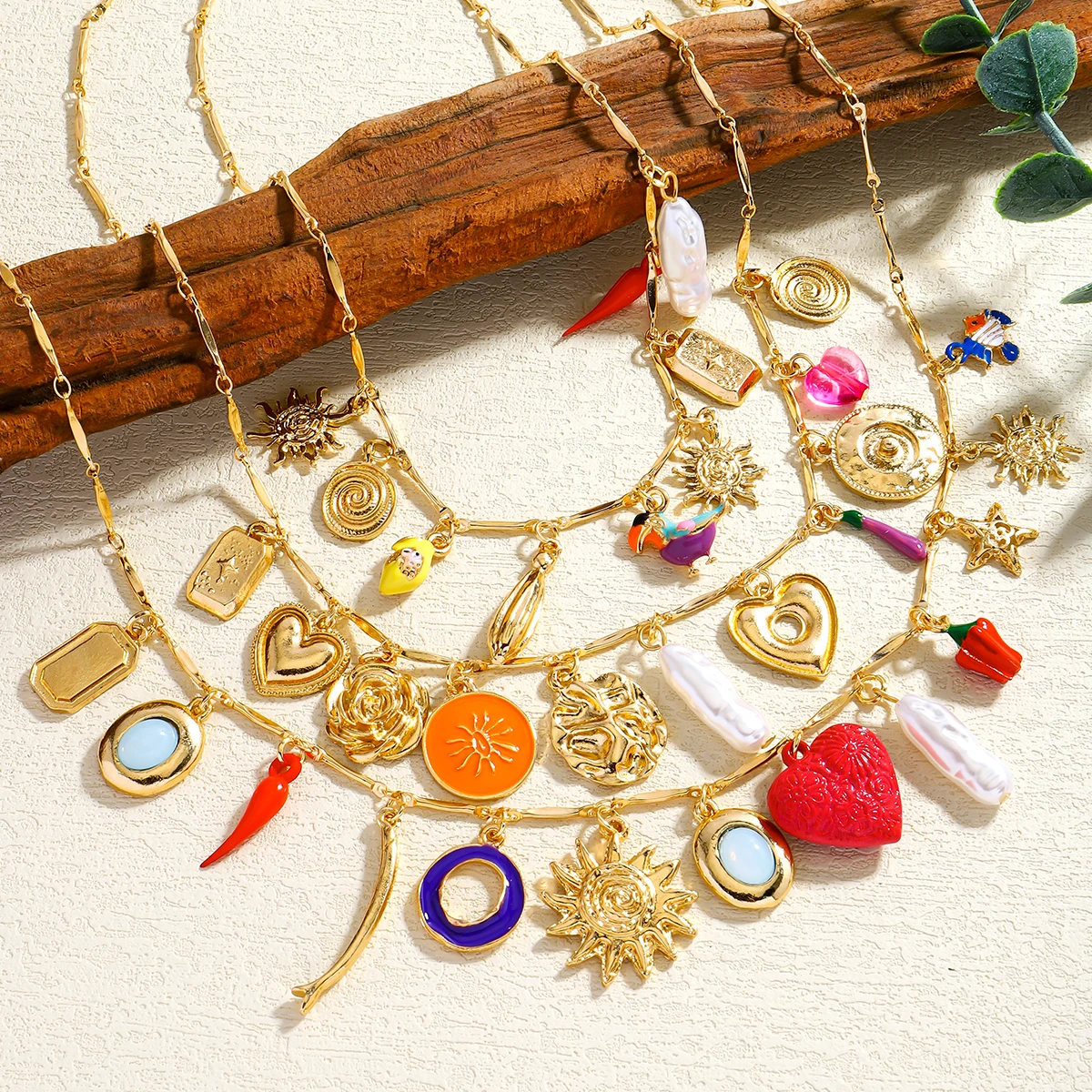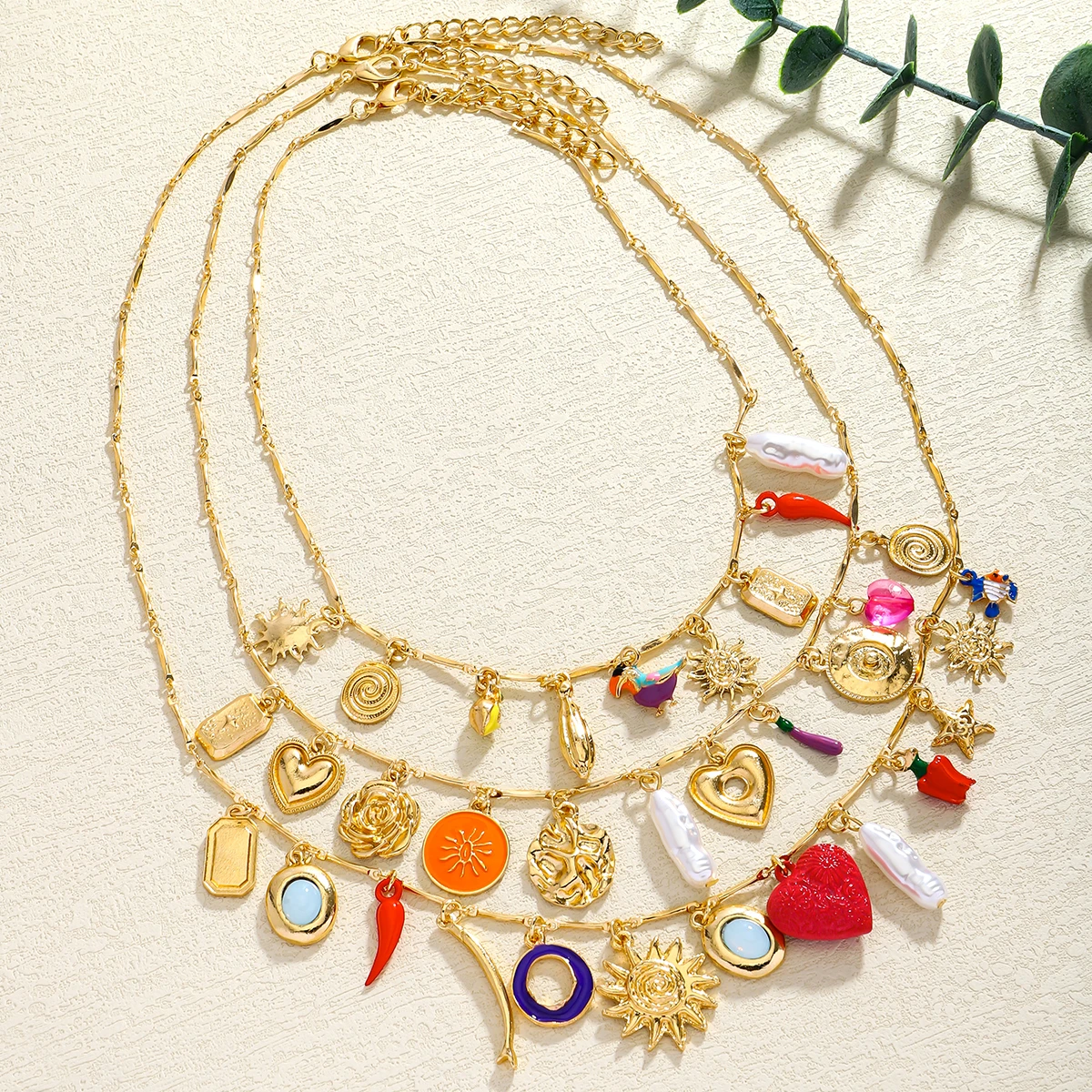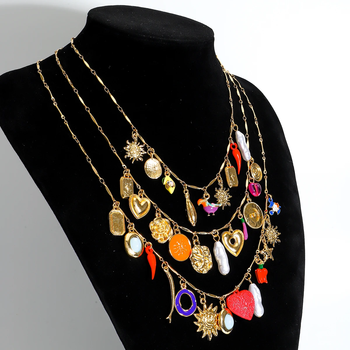 Luxurious Three-Layer Gemstone Necklace Bohemian Heart Baroque Pearl Sun Elegant Multi-Layer Jewelry for Party And Banquet Wear