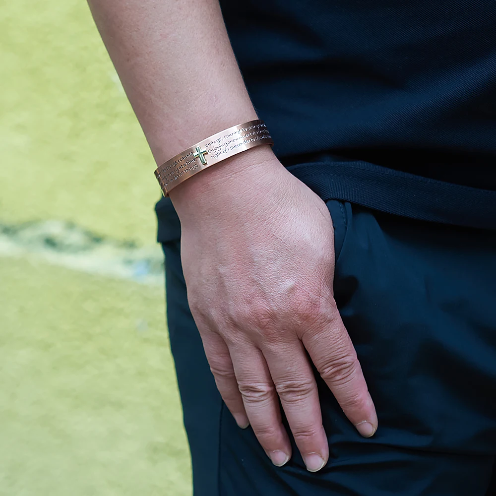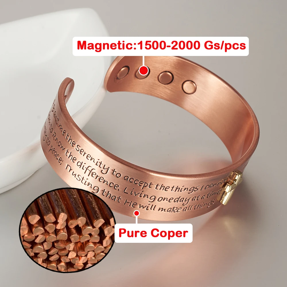 Pure Copper Bracelets for Men Cross Bible Adjustable Cuff Magnetic Bangles 15mm Arthritis Health High Magnet Jewelry Resizable