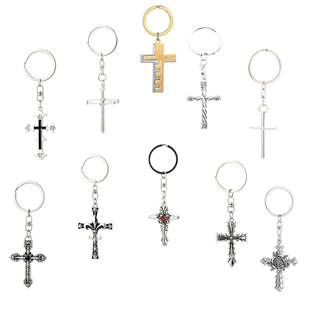 Vintage Gothic Cross Keychain Metal Christian Pendant Keyring Women Men Car Key Chains Bag Accessories Jewelry Gifts Keyrings